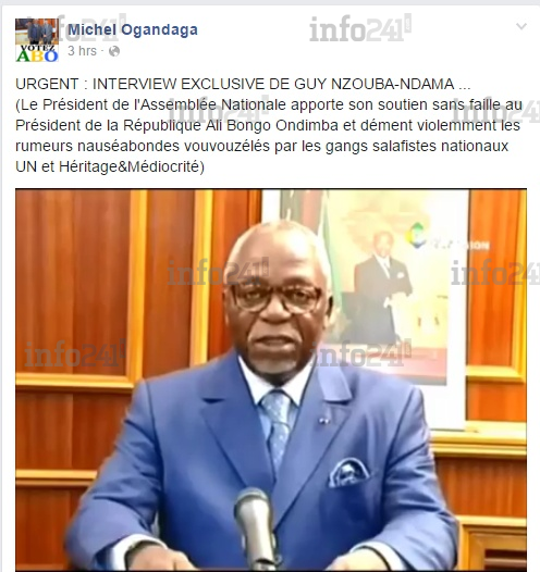Cette vidéo daterait en effet d’une année et n’est pas conforme à la réalité de l’heure comme nous l’a confirmé une source proche du dossier. La source contactée par Info241 confirme bien l’information rendue publique par la Lettre du Continent. Guy Nzouba songerait bien à défier Ali Bongo d’où la campagne de désinformation entretenue par le pouvoir.