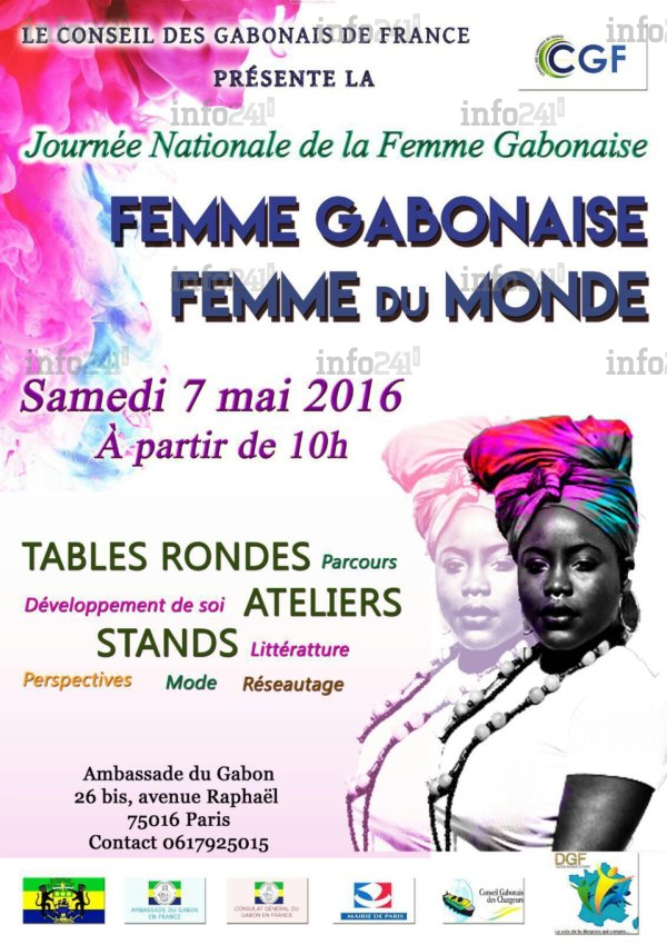 Le Conseil des Gabonais de France (CGF) organise le 7 mai 2016 à l’ambassade du Gabon à Paris, sa journée consacrée à la mise en valeur, sous toutes ses formes, de la femme gabonaise de France. Cette troisième édition 2016 sera donc placée sous le signe de l’ouverture aux femmes du monde avec pour thème : « Femmes de la diaspora Gabonaise & Femmes du Monde ».