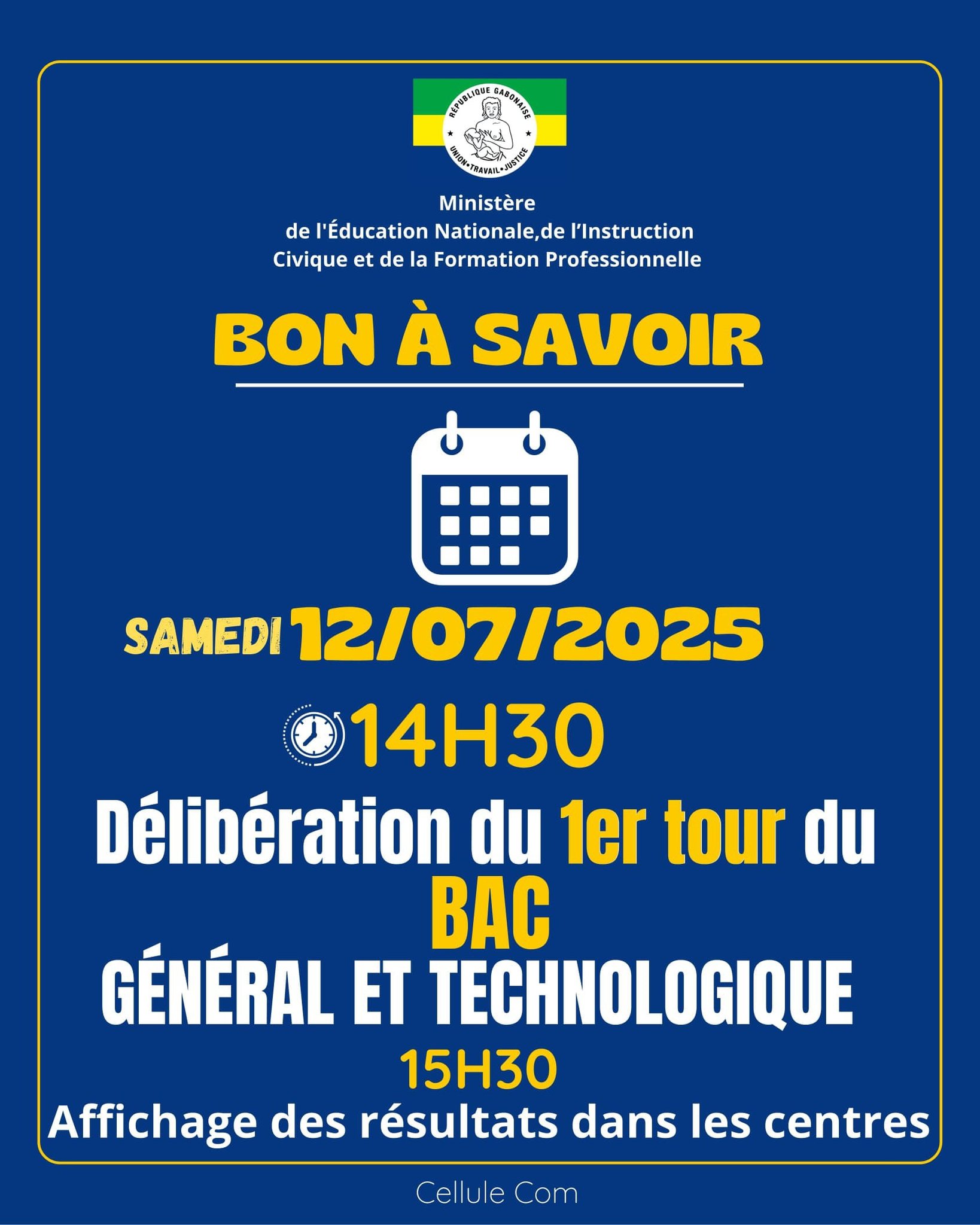 Un visuel du ministère confirmant l’annonce des résultats ce samedi