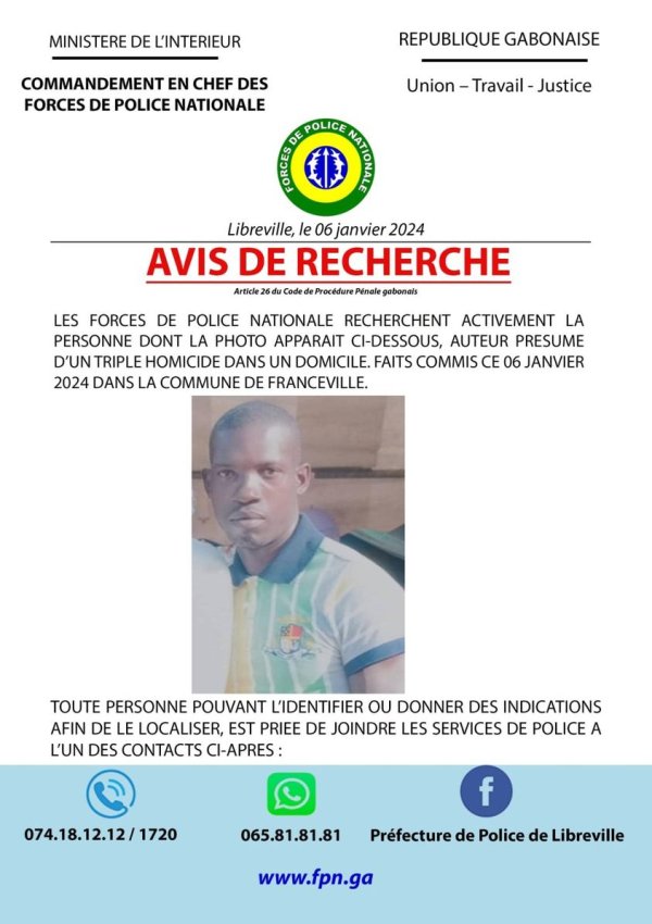 L’avis de recherche de la police gabonaise