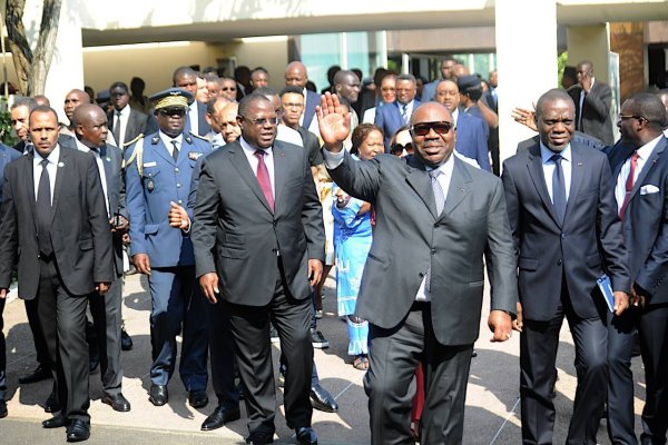 Ali Bongo et son Premier ministre remerciant la foule de leur présence