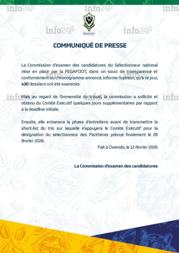 Le rendez-vous est donc pris pour le samedi 28 février 2026. C’est à cette date que l’on saura enfin qui, parmi les centaines de postulants, aura la lourde mission de redonner de la superbe aux Panthères et de conduire le pays vers ses prochains objectifs continentaux. En attendant, le suspense reste entier à Owendo.
