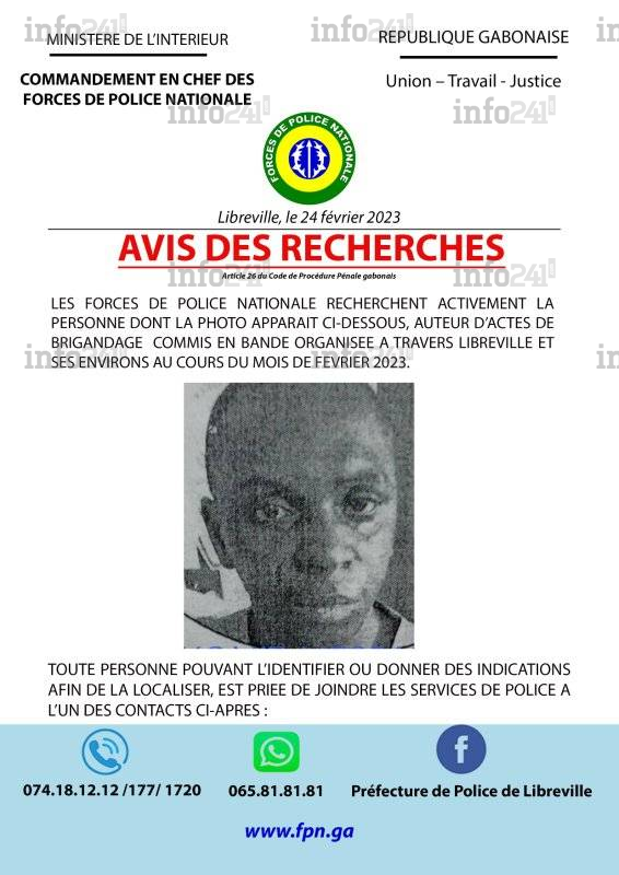 « Pour les nécessités d’enquête, les Forces de police nationale recherchent activement la personne dont la photo apparait ci-dessous, auteur présumé d’actes de brigandage commis en bande organisée à travers Libreville et ses environs au cours du mois de février 2023 », précise l’avis de recherche de la police gabonaise. Pour l’heure, la nationalité et le nom de cet individu n’ont été rendus publics. L’individu recherché serait le « chef d’une bande ayant commis des actes de brigandage ».