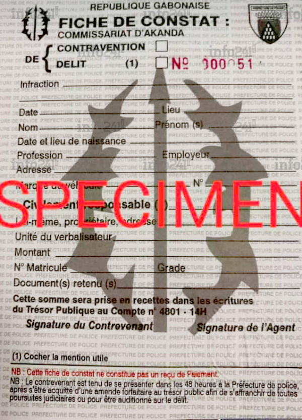En effet, la préfecture de police indique dans un communiqué parvenu à la rédaction d’Info241 : « En vue de lutter contre le racket, la Préfecture de Police de Libreville informe les populations de la mise en place de nouvelles fiches de Constat de contravention identifiables selon l’Unité de Police verbalisatrice ».