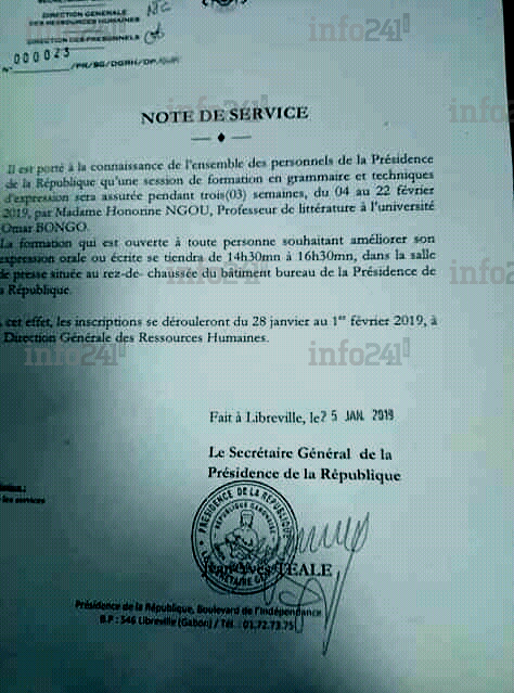 La note de service du SG de la Présidence gabonaise