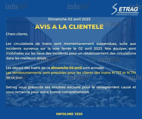 Un communiqué de la Setrag annonçant l’annulation des trains