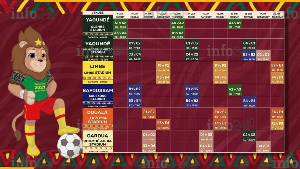Rappelons que la phase de groupes des 24 équipes qualifiées pour cette CAN 2021 aura lieu du 9 au 20 janvier 2022. Suivra ensuite les huitièmes de finale pour 16 équipes qualifiées du 23 au 26 janvier 2022. Les quarts de finale auront lieu les 29 et 30 janvier 2022, les demi-finales les 2 et 3 février 2022, le match de classement et la finale auront lieu le 6 février 2022. De quoi garantir du bon football dans les 5 villes qui accueilleront le tournoi : Douala, Yaoundé, Bafoussam, Garoua et enfin le site Limbé-Buéa.