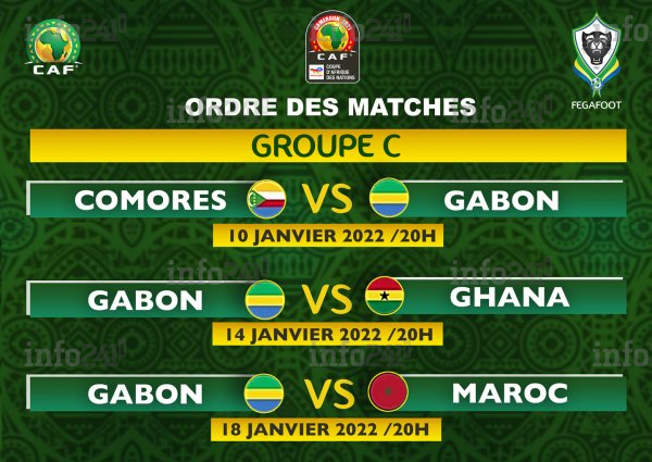 Selon le tirage au sort de cette phase de groupes, les Panthères du Gabon défieront en entame de compétition les Cœlacanthes des Comores le 10 janvier prochain à 20h au stade Ahmadou Ahidjo de Yaoundé. Suivra ensuite les confrontations contre les deux mastodontes de ce groupe C : le Ghana et le Maroc. D’abord les Blacks Star du Ghana le 14 janvier toujours à 20h puis le 18 janvier face aux Lions de l’Atlas du Maroc. Il faudra donc au Gabon battre déjà les Comores et s’offrir l’un des deux mastodontes pour être sur de passer ce tour préliminaire.