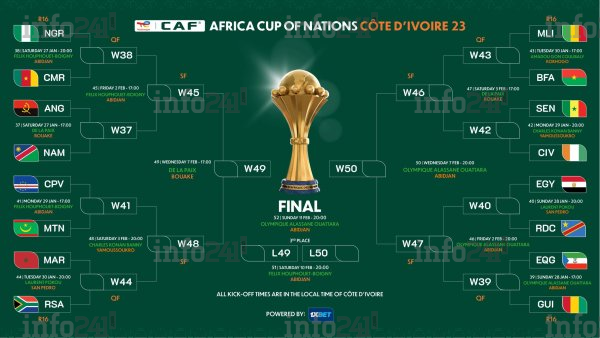 Après une phase de groupes riche en rebondissements, la Coupe d’Afrique des Nations CAF TotalEnergies Côte d’Ivoire 2023 entre dans une nouvelle phase cruciale avec les matchs à élimination directe. Les rencontres promettent des affrontements intenses et des moments palpitants pour les passionnés de football africain. Ainsi, les 8es de finale se disputeront du 27 au 30 janvier.