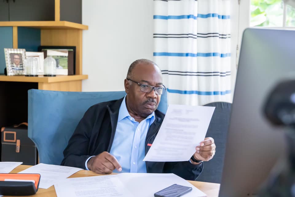 Avec 16 cas positifs au Covid-19 annoncés hier au Gabon, Ali Bongo vit désormais confiné dans sa voluptueuse villa de Libreville. Pour montrer l’exemple du confinement partiel qui a instauré, il a posté ce mardi plusieurs clichés le montrant au travail, en pleine visio-conférence avec ses ministres et plusieurs hauts responsables. Une opération de charme qui ne manque pas de laisser transparaître le luxe insolent de son espace de travail. Un luxe plutôt rare chez nombre de Gabonais, appelés à rester confinés chez eux pour éviter la propagation du coronavirus.