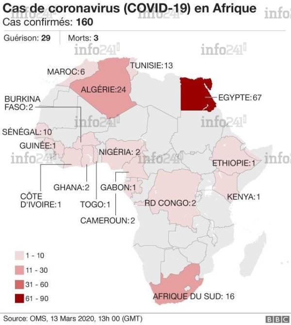 Les cas de Covid-19 en Afrique au 13 mars