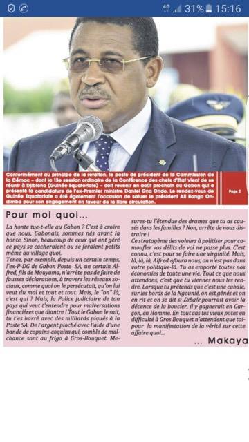 L’ancien P-DG du groupe La Poste, Alfred Mabika Mouyama a mis sur le banc des accusés le Premier ministre chef du gouvernement, Emmanuel Issozet Ngondet, comme auteur présumé et responsable des détournements des subventions de l’Etat gabonais, allouées à La Poste. Sans passer outre les responsabilités d’Alain Claude Bilie Bi Nzé, Yves Fernand Manfoumbi, respectivement Porte- parole du gouvernement, Ministre de la communication et Ministre de l’Agriculture dans la crise de trésorerie qui secoue ce fleuron de l’économie gabonaise. Dans cette tribune libre, le natif de Mouila répond à la chronique à charge du quotidien gouvernemental L’Union.