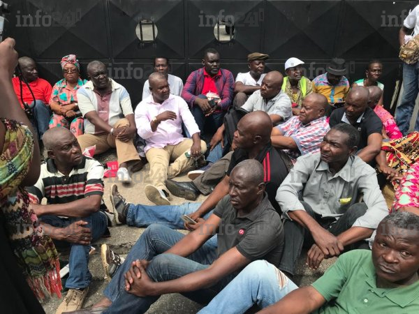 Des retraités gabonais en colère manifestent devant les locaux du ministère du Budget © 2022 D.R./Info241