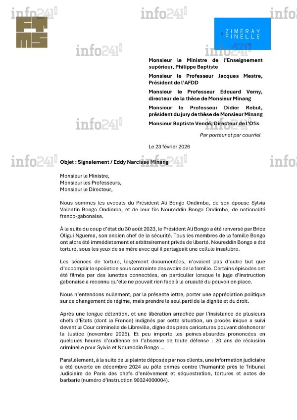 Doctorat d’Eddy Minang : quand le « signalement » des 4 avocats des Bongo expose leurs risibles lacunes © 2026 D.R./Info241