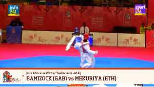 Retour sur la victoire ce matin d’Emeline Leila BAMIZOCK face à l’Ethiopienne Kidist Dinberu MEKURIYA. Combat comptant pour les 1/8 de finales de taekwondo des -46 kg.