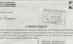 Le ministère de l’Education nationale, de l’enseignement technique et professionnel a égaré 77 dossiers de son personnel... 6:04 p.m.