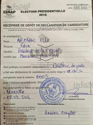 D’autres sons de cloche pessimistes n’ont pas tardé, selon M. Nong, « En fait, Jean Ping s’est plié aux ’’nouvelles exigences’’ illégales de la CENAP, notamment la curieuse présence du certificat de nationalité au lieu de l’acte de naissance et la déclaration de non double nationalité, alors que la loi du code électoral ne l’exige pas.. Si ceux sont là, les pièces à fournir pour être candidat à la présidence gabonaise, considérez qu’Ali Bongo sera bien évidemment candidat, la CENAP validera son dossier malgré la contestation de la coalition des membres de l’opposition ».