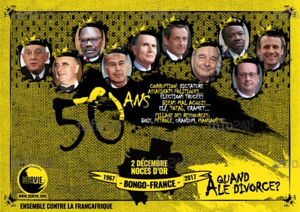 Une affiche de l’ONG Survie appelant à la fin de la Françafrique incarnée toujours au Gabon par la famille Bongo
