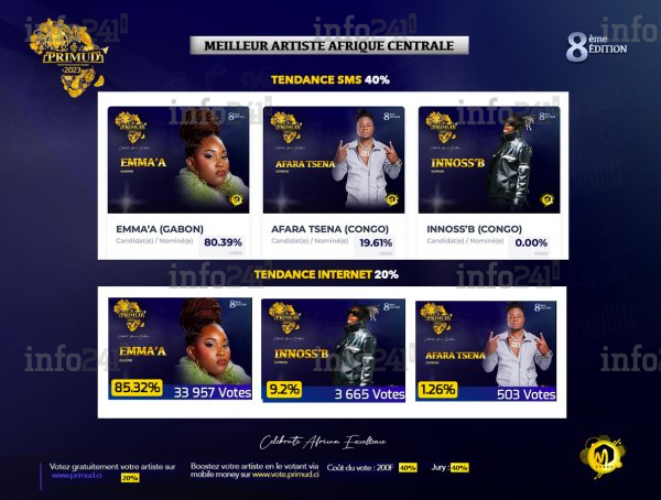 Il faut dire que la victoire de la gabonaise s’était déjà dessinée depuis les premières tendances dévoilées notamment le 15 novembre par les organisateurs de cette cérémonie de récompenses des artistes et acteurs culturels du continent. Emm’a était en lice pour ce prix sous-régionale face à Ya Levis, Extra Musica Nouvel Horizon, Afara Tsena, Innoss’B, Blanche Bailly, Krys M, KO-C, Mimie et Phill Bill.