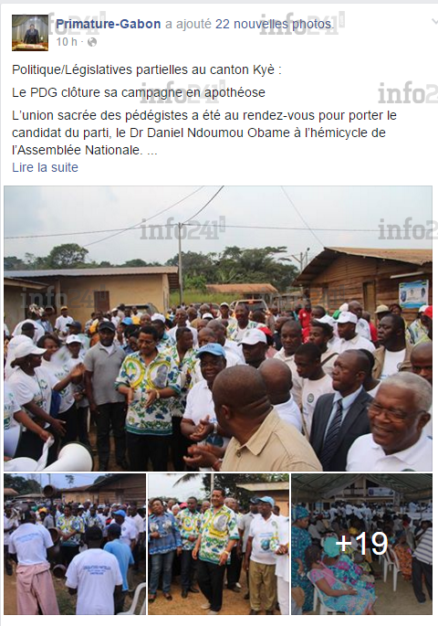 Si le soutien de Daniel Ona Ondo à son homonyme Woleu-ntemois, Daniel Ndoumou Obame, est bien dans l’ordre des choses, celui de la Primature l’est nullement ! Sinon comment comprendre que la page Facebook officielle du chef du gouvernement gabonais s’en vante par plusieurs posts qui n’y ont nullement leur place. Cela fait-il partie des activités du gouvernement de la République ? Quid du mélange de genre propre à cette « démocratie » tropicale qui n’est pas exorcisée de ses démons issus de la fin du parti unique.