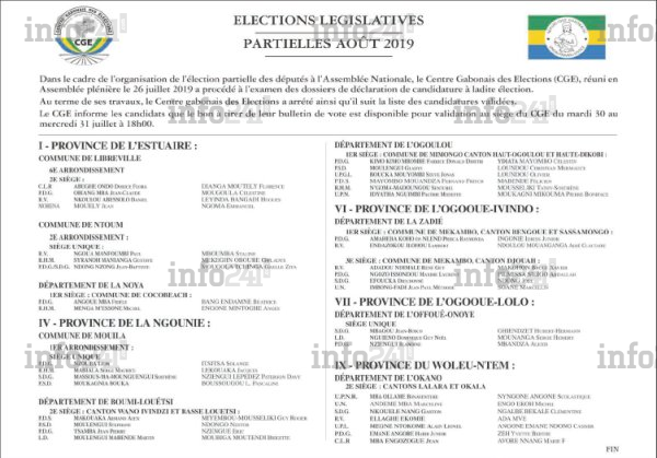Dans le détail, ces partiels concerneront dans l’Estuaire, 9 candidats pour les sièges du 6e arrondissement de Libreville, celui du 2e arrondissement de Ntoum et celui du département de la Noya. Pour la Ngounié, 14 candidats tenteront de séduire les électeurs dans les sièges du 1er arrondissement de Mouila, du 2e siège du département de Boumi-Louesti (cantons Wano Ivindzi et Basse Louetsi) et le 1er siège de la commune de Mimongo (cantons Haute-Ogoulou et Haute-Dikobi) du département de l’Ogoulou.