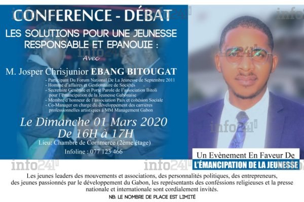 Le panel d’intervenants de cette conférence était composé de Josper Chrisjunior Ebang Bitougat (secrétaire général de l’association Bitoli), d’Yves Roland Mombey (secrétaire général du Club Éducatif l’Élite) et de Garvin Moussodou (responsable communication de l’association Bitoli). Grace à la participation d’une soixantaine de jeunes, le débat a porté sur la nécessité d’être une jeunesse responsable.