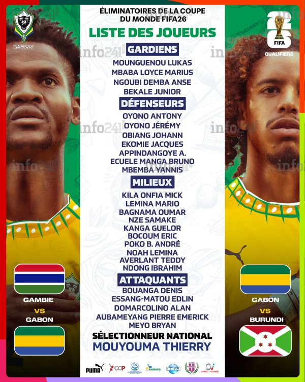 Mondial 2026 : Mouyouma dévoile ses 26 Panthères du Gabon à l’assaut de la Gambie et du Burundi © 2025 D.R./Info241