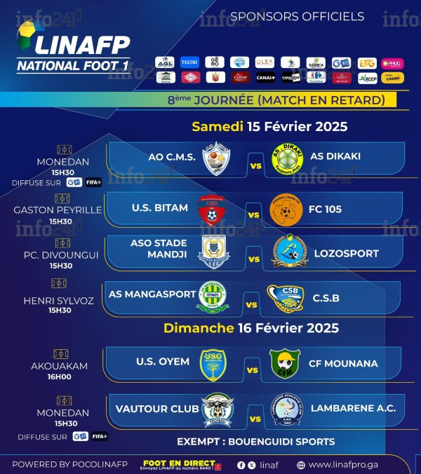 - Lozosports – ASO Stade-Mandji : Déjà à 17 points, Lozosports deviendrait dauphin avec une victoire (20 pts) et même un nul suffirait pour dépasser Bouenguidi-Sports.