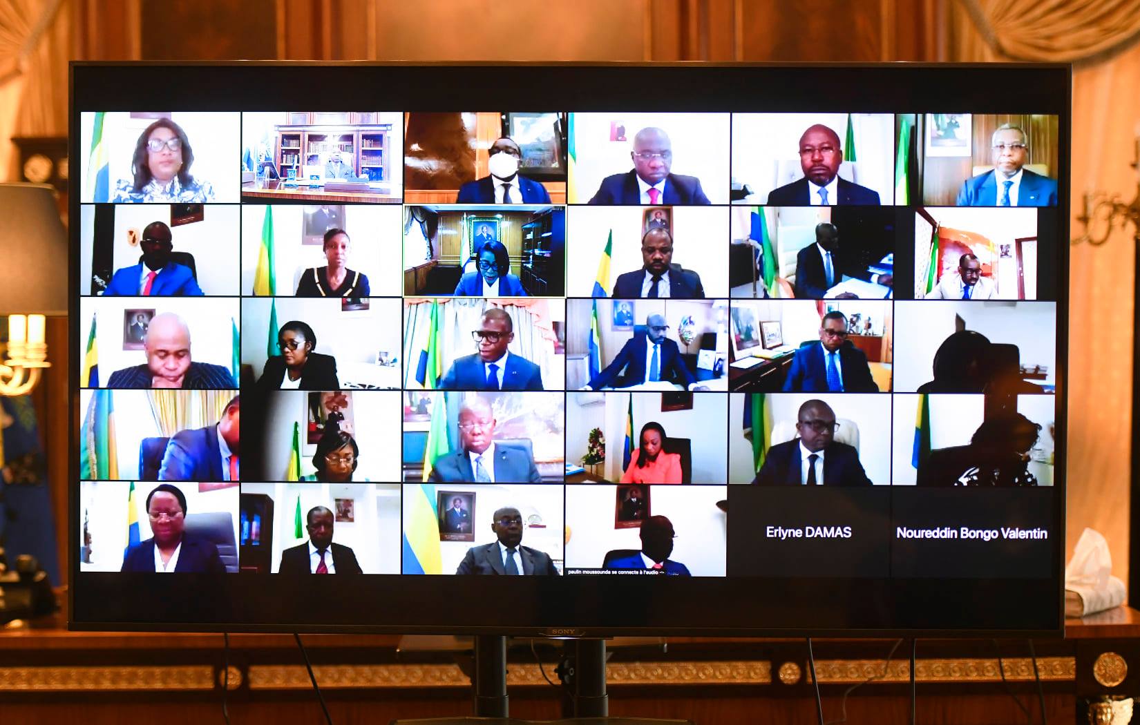 C’est la curiosité du dernier conseil des ministres tenu ce 10 décembre par visioconférence. On y voit dans une image officielle Noureddin Bongo Valentin, le fils d’Ali Bongo et de Sylvia Valentin, siéger aux cotés des membres du gouvernement à ce conseil des ministres. S’il est dans les faits coordinateur des Affaires présidentielles, sa présence très familiale aux cotés de véritables ministres de l’Etat, interroge sur qui est finalement en droit d’assister à ce rendez-vous réservé en théorie au seul gouvernement.