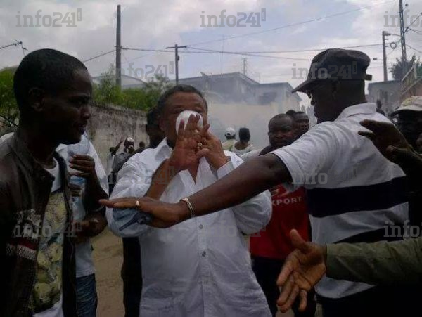 Jean Ping subissant les gaz lacrymogènes de la police