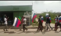Emmanuel Macron accueilli au Gabon par des drapeaux russes à Port-Gentil