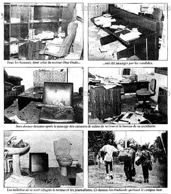 « Avec une violente et une barbarie inouïes, il ont saccagé le rectorat et plus grave encore, agressé sauvagement et sans vergogne le recteur, le vice-recteur, le doyen de la faculté de Droit et des Sciences économiques, ainsi que de nombreux enseignants, personnels administratifs et des journalistes », regrettait pour le déplorer le gouvernement. « L’intolérable atteinte à la dignité humaine commise sur la personne du recteur et du vice-recteur est un acte qui qui ne s’est jamais produit nulle part ailleurs », rappelait alors René Ndemezo’o Obiang pour dépeindre la gravité de la situation.