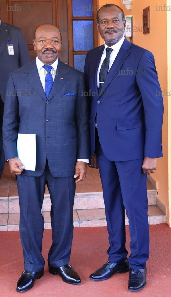 Ali Bongo posant avec son récent membre du gouvernement, propulsé à la tête du CGE