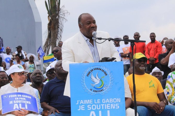 Quelques images du show politique d’Ali Bongo consécutif au dépôt officiel de sa candidature pour la présidentielle gabonaise d’août 2016. C’était samedi 9 juillet au rond-point de la Cité de la démocratie à Libreville.