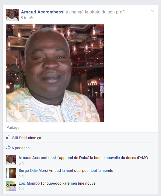 C’est résolument le commentaire de trop pour Arnaud Accrombessi ! Le proche du directeur de cabinet présidentiel d’Ali Bongo, a qualifié dimanche soir sur son compte Facebook, depuis Dubaï où il se trouverait, de « bonne nouvelle » la mort de l’opposant André Mba Obame décédé quelques heures plutôt à Yaoundé. Décès que certains attribuent à un empoisonnement de Maixent Accombressi sur le leader de l’opposition gabonaise. Un commentaire odieux qui n’est pas sans conséquence. De quoi jeter de l’huile sur le feu !