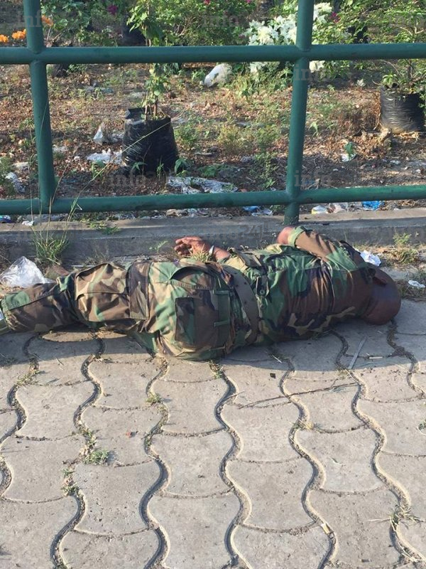 Non ce militaire Gabonais n’est pas mort ! Il est juste ivre d’alcool après un après-midi boulot-cuite bien arrosé ! L’homme a été retrouvé ainsi sur la voie express à Libreville où il roupillait paisiblement en attendant de revenir à lui. Un must pour ces hommes habillés de l’armée gabonaise qui sont passés maître dans l’art d’allier emprise d’alcool et vie professionnelle ! Des images qui honorent bien notre armée et ses agents censés assurer notre défense.